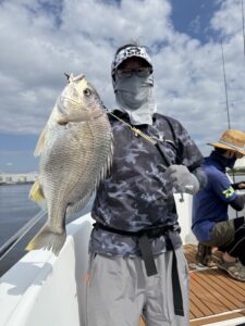 ピーカン&無風というタフなコンディションではありましたが、皆様の粘りと集中力が実を結び、良型の黒鯛(チヌ)、キビレをしっかりキャッチすることができました👏