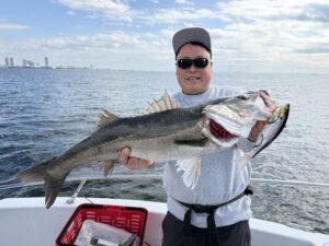 この日は、初めてのビッグベイトシーバス釣りに挑戦されるゲスト様をお迎えしての出船!